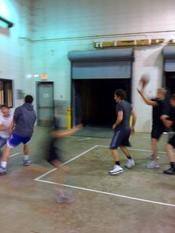 Playing some basketball on the loading dock in Little Rock.